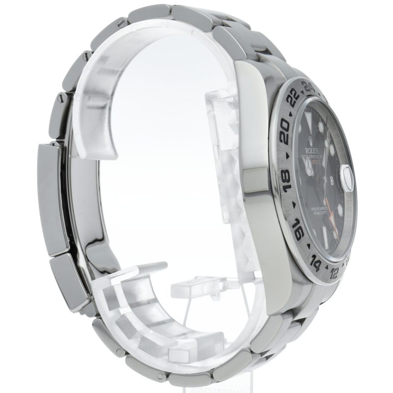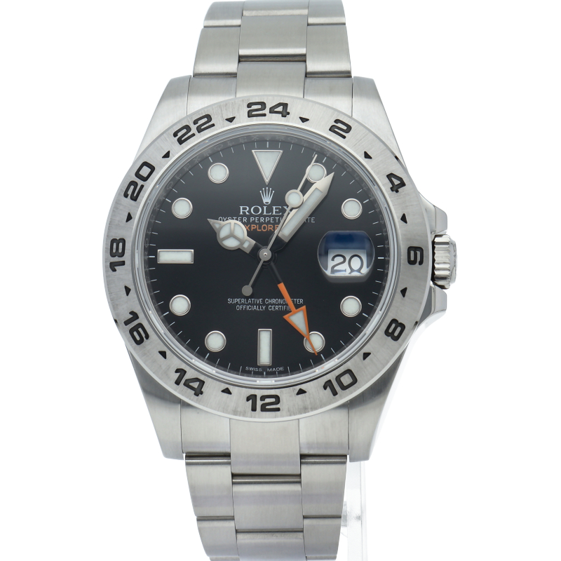 2011年にバーゼルで発表された新型「エクスプローラー2」。ケースサイズは42ミリにアップされ初代エクスプローラー2を思わせる24時間オレンジ針が特徴的な1本。
