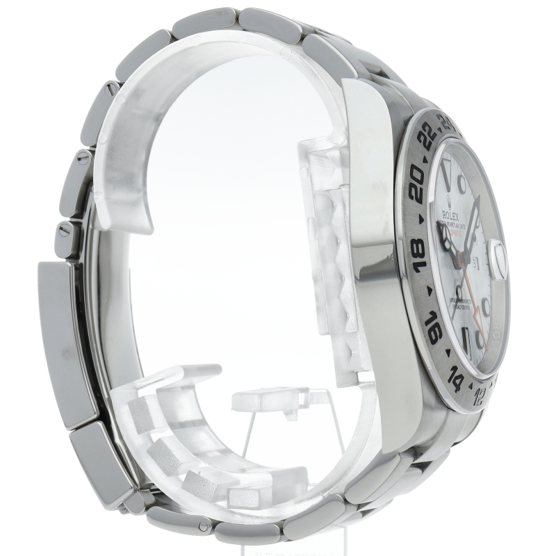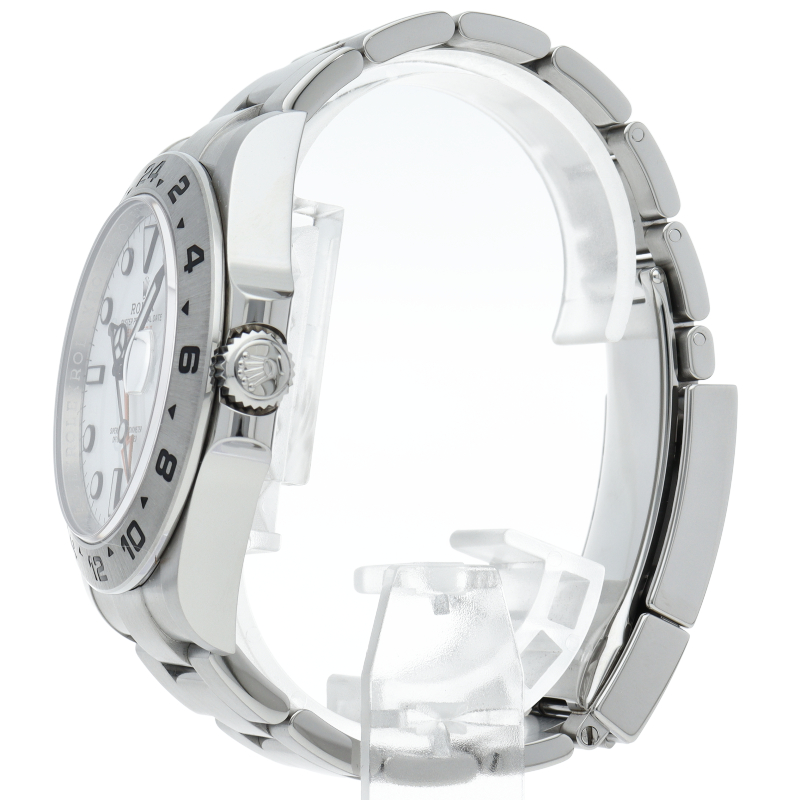 2021年に発表された216570の後継機、【226570 オイスターパーペチュアル エクスプローラーII。文字盤中央から伸びるオレンジカラーのGMT針と24時間スケールが刻まれたベゼルを用いて第二時間帯も確認可能な探検家、登山家の為のプロフェッショナルウォッチです。