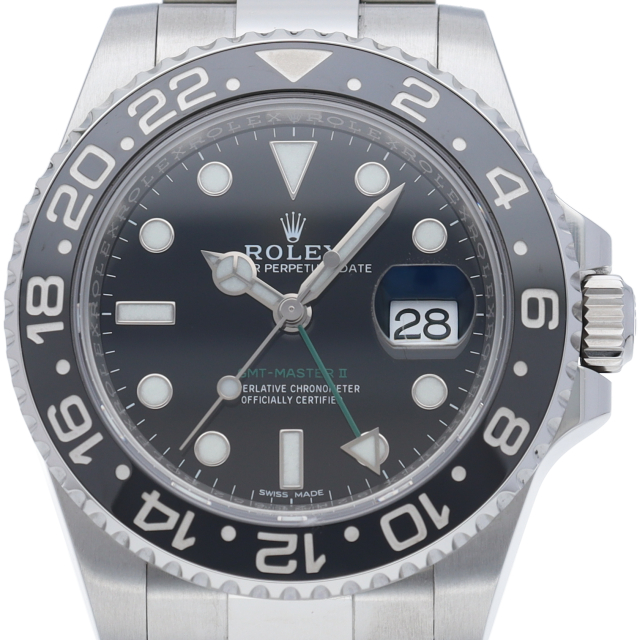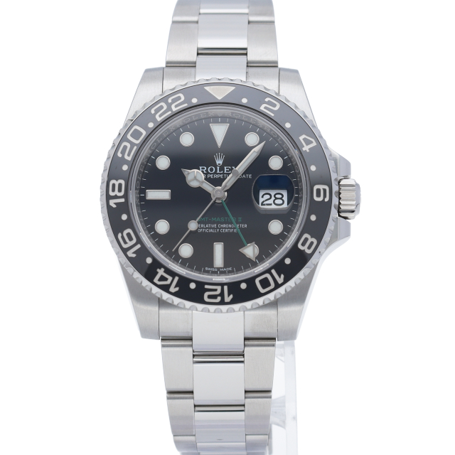 ロレックス人気モデル「GMTマスター2」。2019年に生産が終了となったセラミックの黒ベゼルは実用性はもちろん、これからの相場が楽しみな1本です。