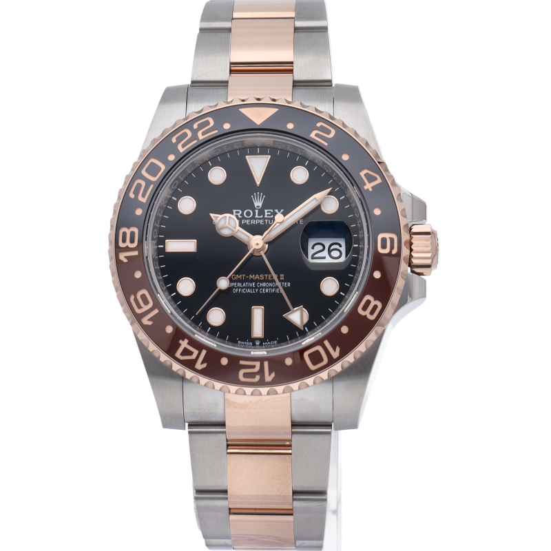 セラクロムベゼルでのGMTマスター2。ロレックスの最新ムーブメント「Cal.3285」を搭載しており、エネルギー効率が最適化されたクロナジー脱進機、テンプを衝撃から守る為の耐震装置パラフレックス ショック・アブソーバそして70時間ものロングパワーリザーブとロレックスの最新技術を駆使したムーブメントになっています。