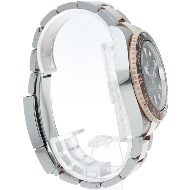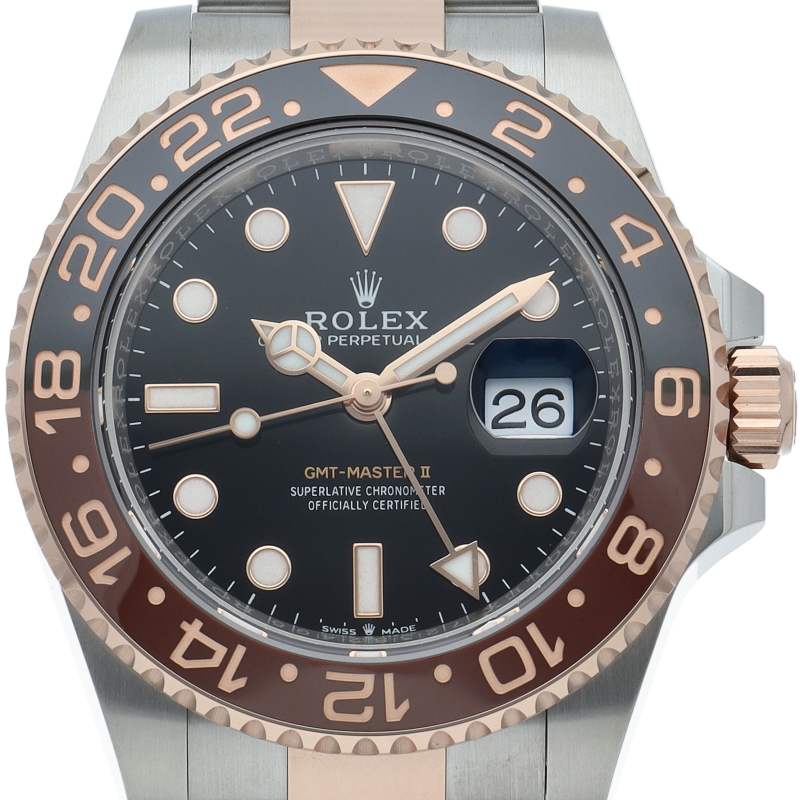 セラクロムベゼルでのGMTマスター2。ロレックスの最新ムーブメント「Cal.3285」を搭載しており、エネルギー効率が最適化されたクロナジー脱進機、テンプを衝撃から守る為の耐震装置パラフレックス ショック・アブソーバそして70時間ものロングパワーリザーブとロレックスの最新技術を駆使したムーブメントになっています。