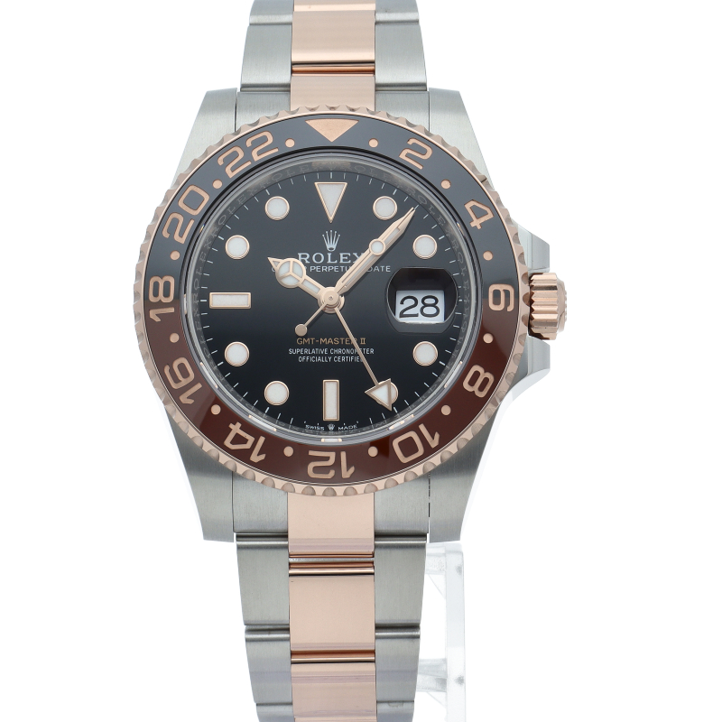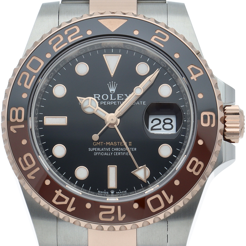 セラクロムベゼルでのGMTマスター2。ロレックスの最新ムーブメント「Cal.3285」を搭載しており、エネルギー効率が最適化されたクロナジー脱進機、テンプを衝撃から守る為の耐震装置パラフレックス ショック・アブソーバそして70時間ものロングパワーリザーブとロレックスの最新技術を駆使したムーブメントになっています。