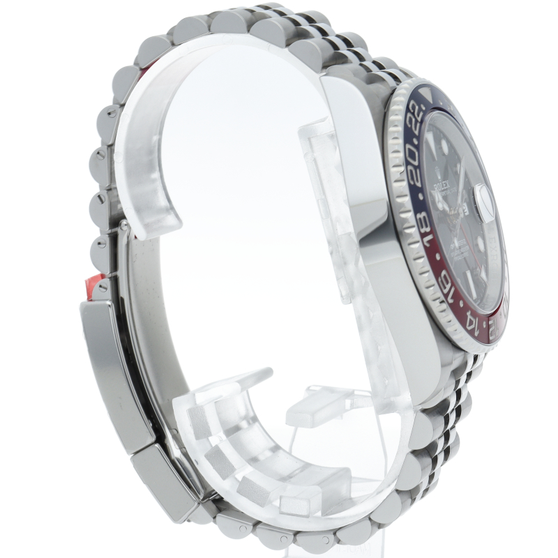ロレックス人気モデル「GMTマスター2」のモデルチェンジした新型モデルです。セラミックベゼルにブレスやバックルも新しくなり高級感が更に増した1本です。