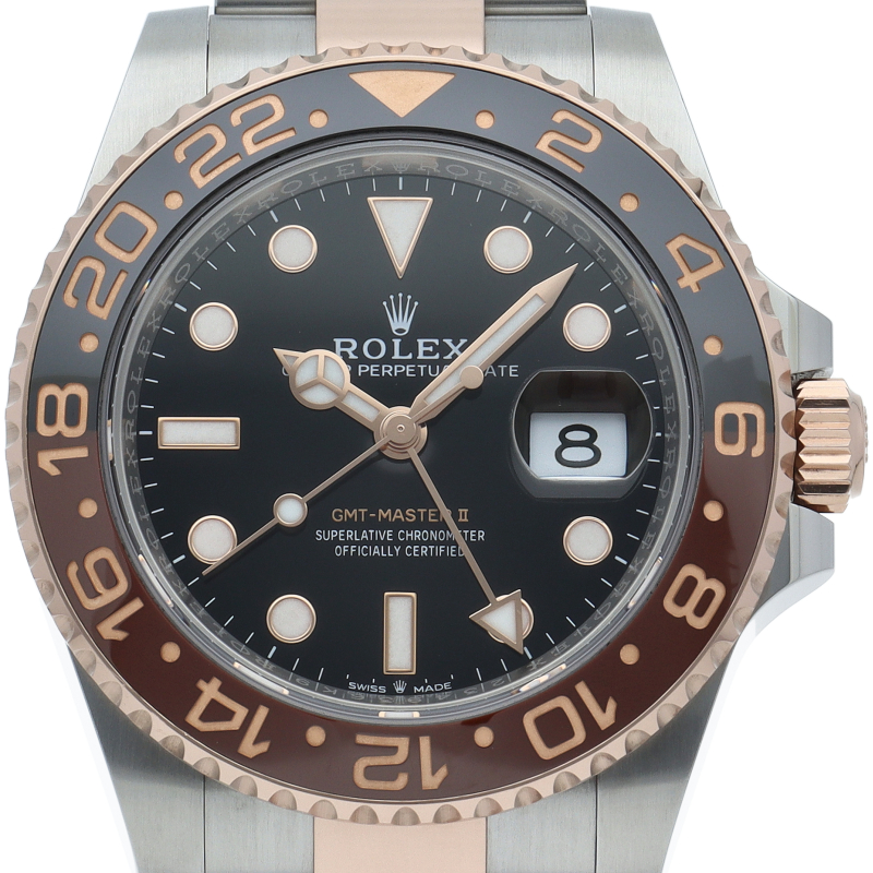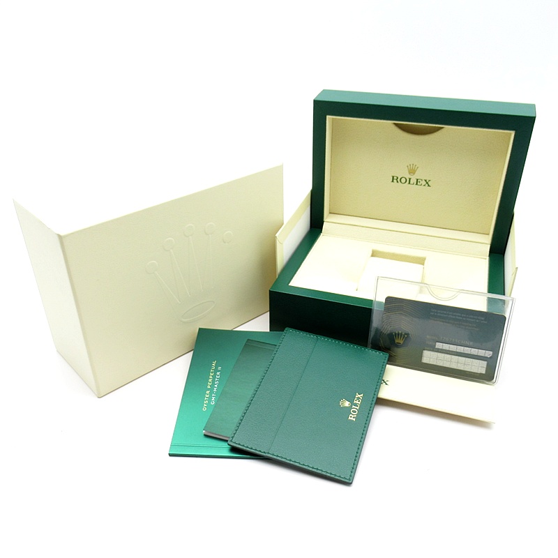 セラクロムベゼルでのGMTマスター2。ロレックスの最新ムーブメント「Cal.3285」を搭載しており、エネルギー効率が最適化されたクロナジー脱進機、テンプを衝撃から守る為の耐震装置パラフレックス ショック・アブソーバそして70時間ものロングパワーリザーブとロレックスの最新技術を駆使したムーブメントになっています。