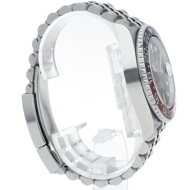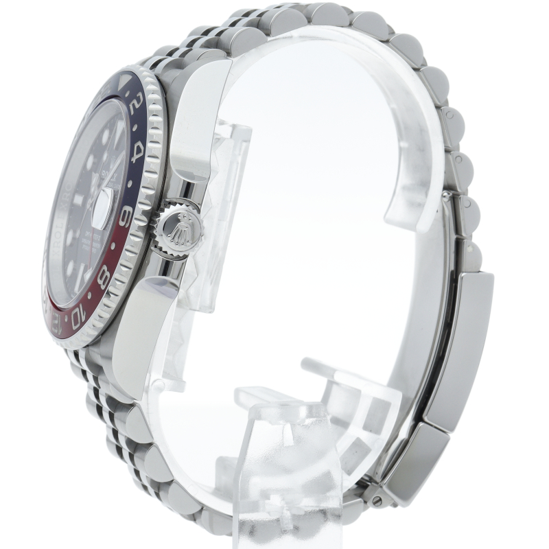 ロレックス人気モデル「GMTマスター2」のモデルチェンジした新型モデルです。セラミックベゼルにブレスやバックルも新しくなり高級感が更に増した1本です。