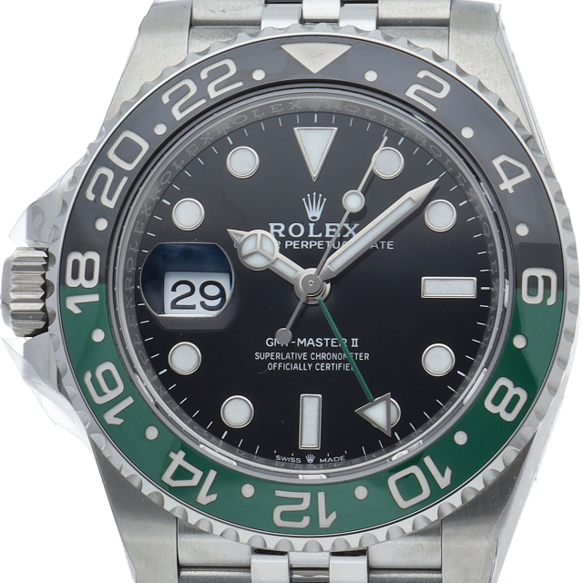 新品。ルーレット刻印。ランダム番。2010年以降の生産。緑黒ベゼル。2022年9月の購入品で以後5年間のメーカー保証が付いています。143.9g。