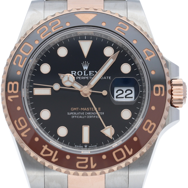 セラクロムベゼルでのGMTマスター2。ロレックスの最新ムーブメント「Cal.3285」を搭載しており、エネルギー効率が最適化されたクロナジー脱進機、テンプを衝撃から守る為の耐震装置パラフレックス ショック・アブソーバそして70時間ものロングパワーリザーブとロレックスの最新技術を駆使したムーブメントになっています。