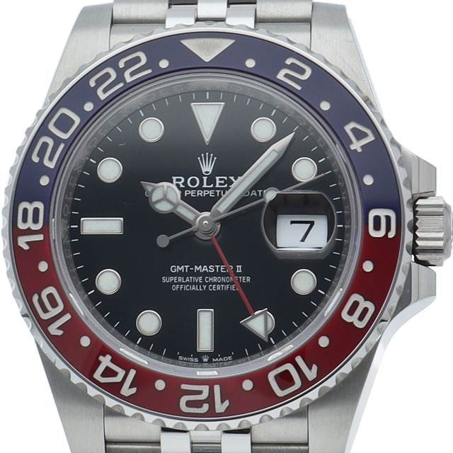 ロレックス人気モデル「GMTマスター2」のモデルチェンジした新型モデルです。セラミックベゼルにブレスやバックルも新しくなり高級感が更に増した1本です。2018年発売モデル。