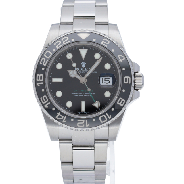 ロレックス人気モデル「GMTマスター2」。2019年に生産が終了となったセラミックの黒ベゼルは実用性はもちろん、これからの相場が楽しみな1本です。