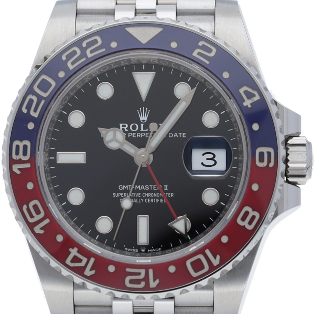 ロレックス人気モデル「GMTマスター2」のモデルチェンジした新型モデルです。セラミックベゼルにブレスやバックルも新しくなり高級感が更に増した1本です。2018年発売モデル。