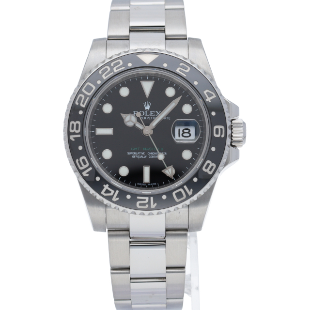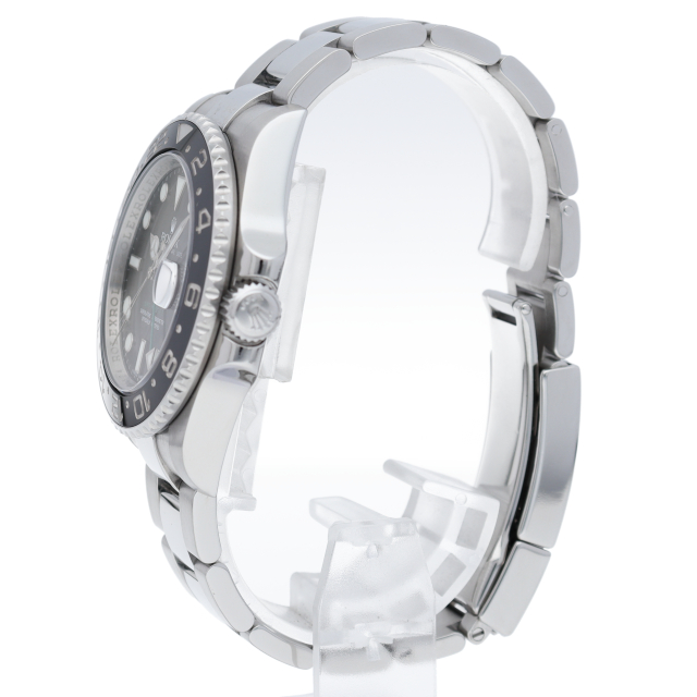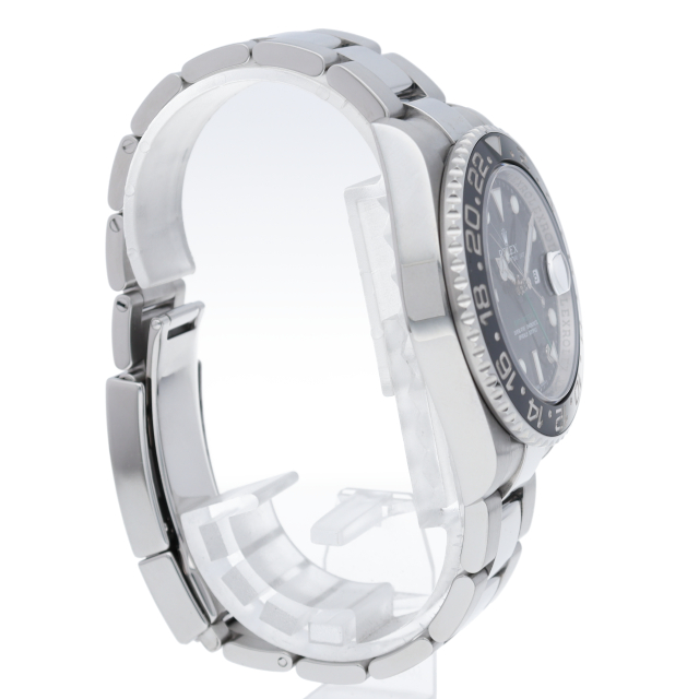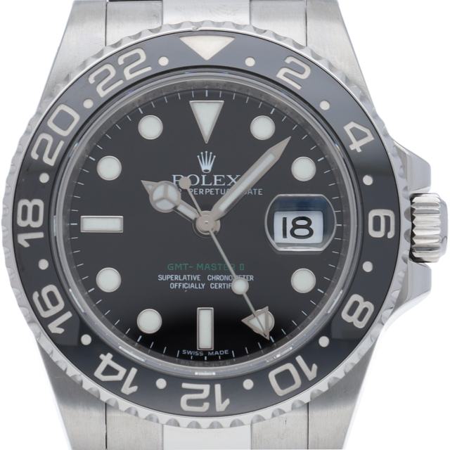 ロレックス人気モデル「GMTマスター2」。2019年に生産が終了となったセラミックの黒ベゼルは実用性はもちろん、これからの相場が楽しみな1本です。