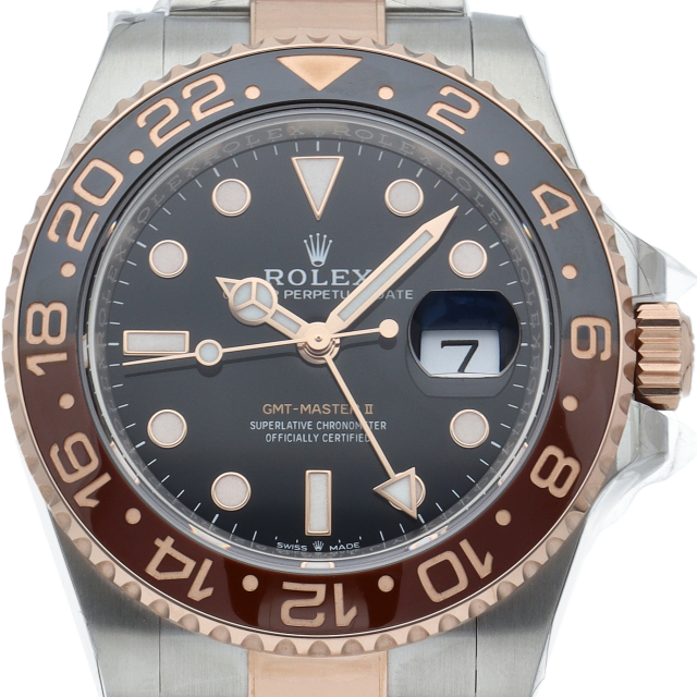 セラクロムベゼルでのGMTマスター2。ロレックスの最新ムーブメント「Cal.3285」を搭載しており、エネルギー効率が最適化されたクロナジー脱進機、テンプを衝撃から守る為の耐震装置パラフレックス ショック・アブソーバそして70時間ものロングパワーリザーブとロレックスの最新技術を駆使したムーブメントになっています。