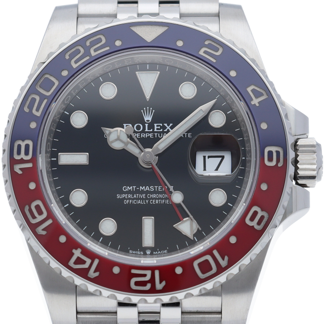 ロレックス人気モデル「GMTマスター2」のモデルチェンジした新型モデルです。セラミックベゼルにブレスやバックルも新しくなり高級感が更に増した1本です。2018年発売モデル。