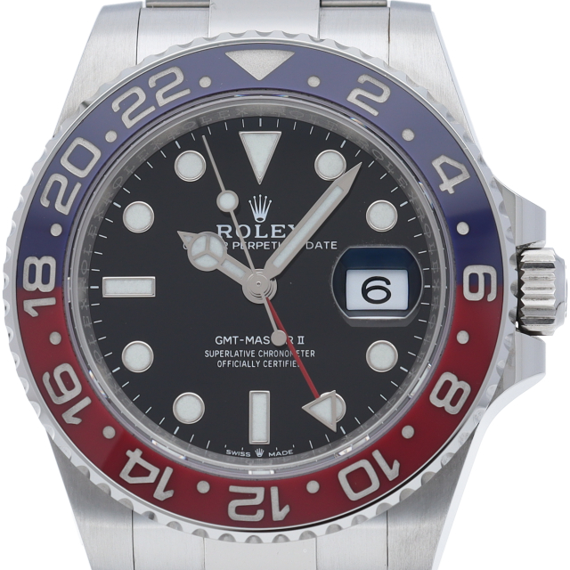ロレックス人気モデル「GMTマスター2」のモデルチェンジした新型モデルです。セラミックベゼルにブレスやバックルも新しくなり高級感が更に増した1本です。