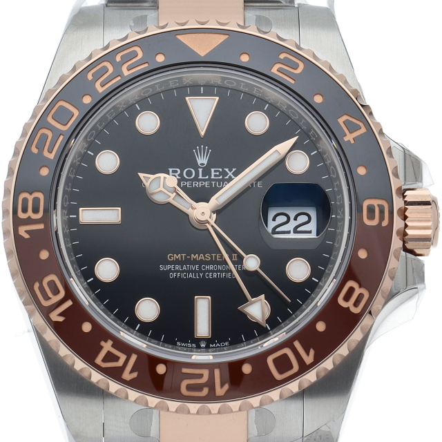 セラクロムベゼルでのGMTマスター2。ロレックスの最新ムーブメント「Cal.3285」を搭載しており、エネルギー効率が最適化されたクロナジー脱進機、テンプを衝撃から守る為の耐震装置パラフレックス ショック・アブソーバそして70時間ものロングパワーリザーブとロレックスの最新技術を駆使したムーブメントになっています。