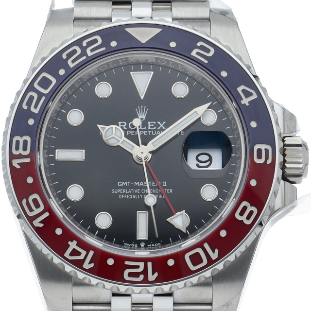 ロレックス人気モデル「GMTマスター2」のモデルチェンジした新型モデルです。セラミックベゼルにブレスやバックルも新しくなり高級感が更に増した1本です。2018年発売モデル。