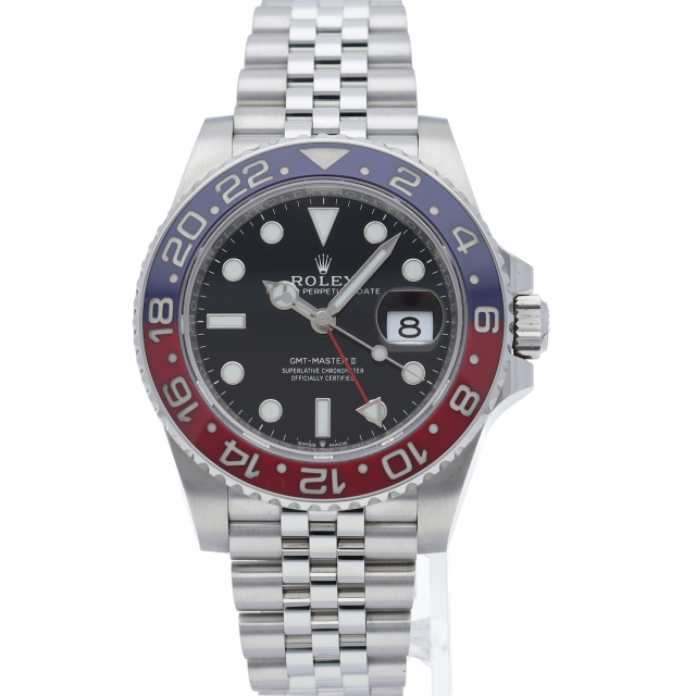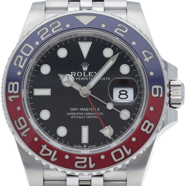 ロレックス人気モデル「GMTマスター2」のモデルチェンジした新型モデルです。セラミックベゼルにブレスやバックルも新しくなり高級感が更に増した1本です。2018年発売モデル。