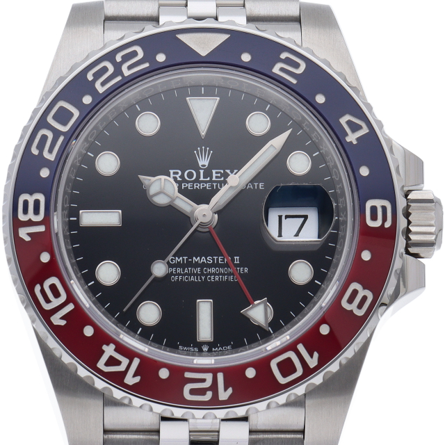 ロレックス人気モデル「GMTマスター2」のモデルチェンジした新型モデルです。セラミックベゼルにブレスやバックルも新しくなり高級感が更に増した1本です。2018年発売モデル。