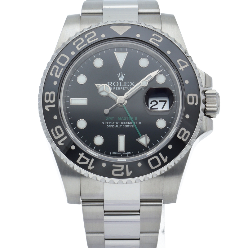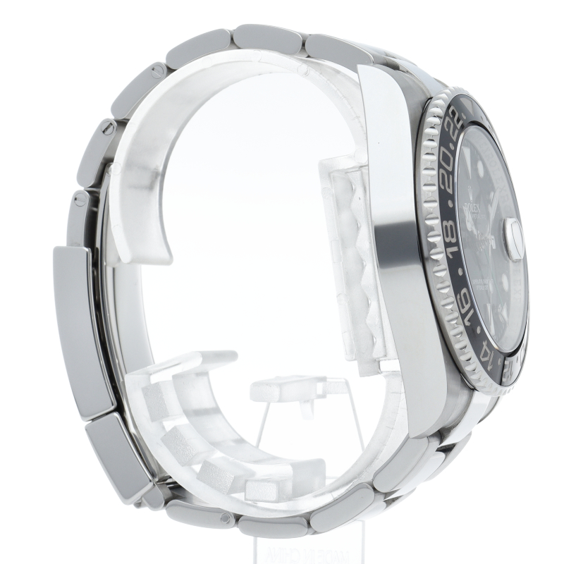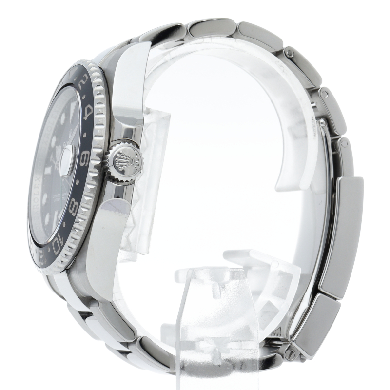 ロレックス人気モデル「GMTマスター2」。2019年に生産が終了となったセラミックの黒ベゼルは実用性はもちろん、これからの相場が楽しみな1本です。