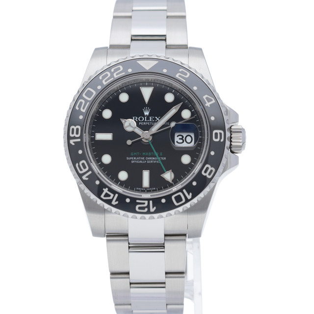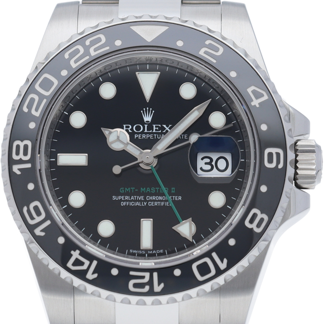 ロレックス人気モデル「GMTマスター2」。2019年に生産が終了となったセラミックの黒ベゼルは実用性はもちろん、これからの相場が楽しみな1本です。