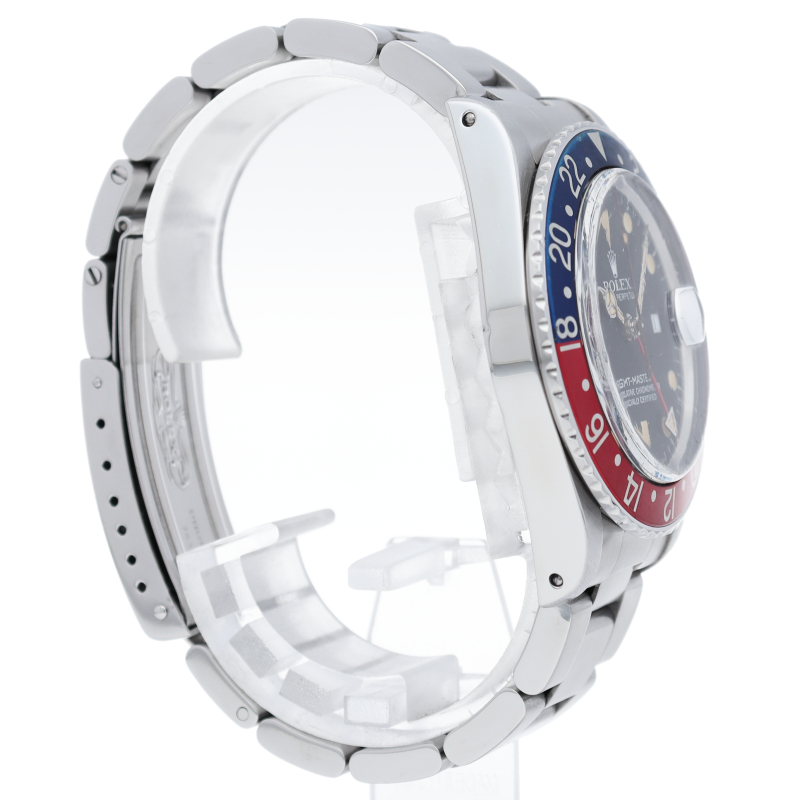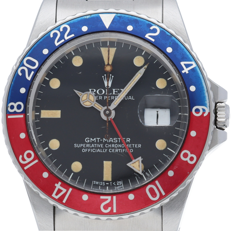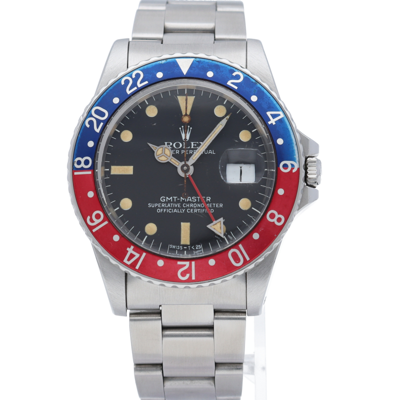 ロレックスの人気スポーツモデル「GMTマスター」のアンティークウォッチです。ヴィンテージならではの夜行の焼けやプラスチック風防が逆に新鮮な腕時計です。