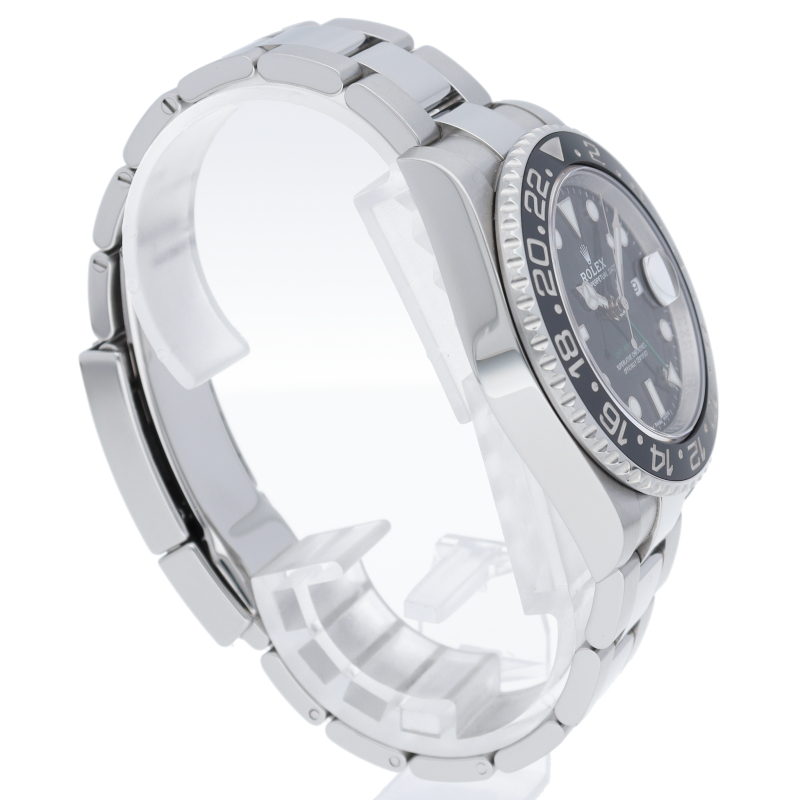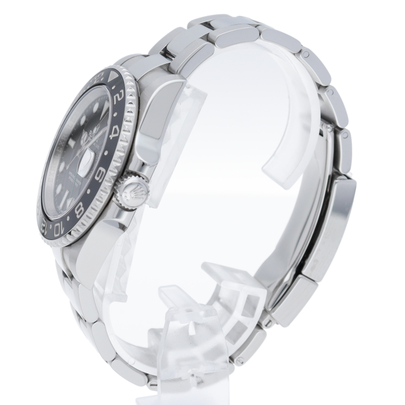 ロレックス人気モデル「GMTマスター2」。2019年に生産が終了となったセラミックの黒ベゼルは実用性はもちろん、これからの相場が楽しみな1本です。