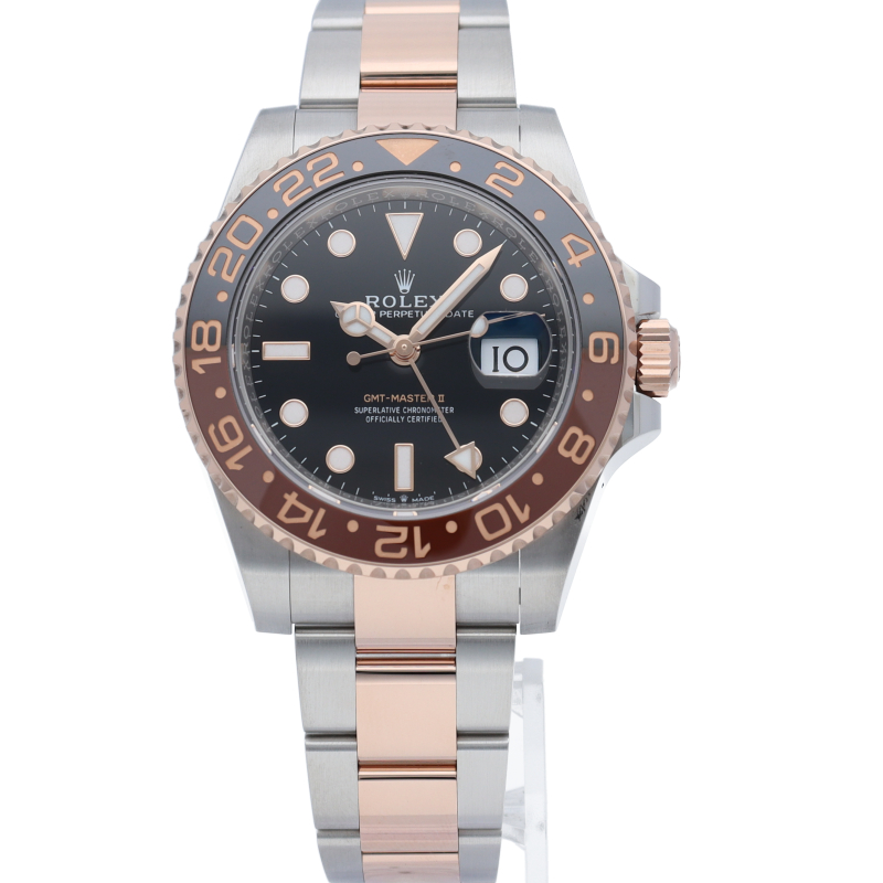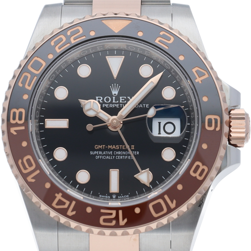 セラクロムベゼルでのGMTマスター2。ロレックスの最新ムーブメント「Cal.3285」を搭載しており、エネルギー効率が最適化されたクロナジー脱進機、テンプを衝撃から守る為の耐震装置パラフレックス ショック・アブソーバそして70時間ものロングパワーリザーブとロレックスの最新技術を駆使したムーブメントになっています。