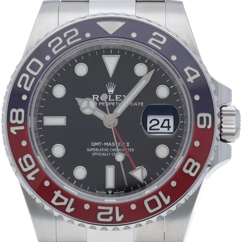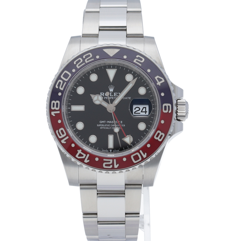ロレックス人気モデル「GMTマスター2」のモデルチェンジした新型モデルです。セラミックベゼルにブレスやバックルも新しくなり高級感が更に増した1本です。2018年発売モデル。