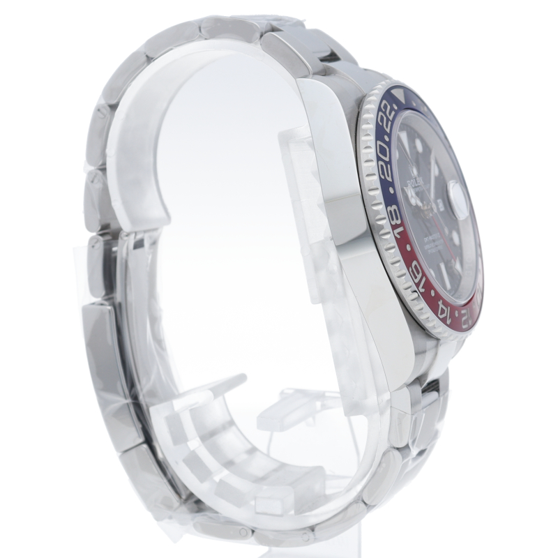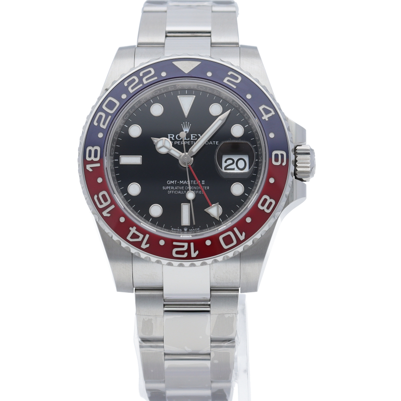 ロレックス人気モデル「GMTマスター2」のモデルチェンジした新型モデルです。セラミックベゼルにブレスやバックルも新しくなり高級感が更に増した1本です。2018年発売モデル。