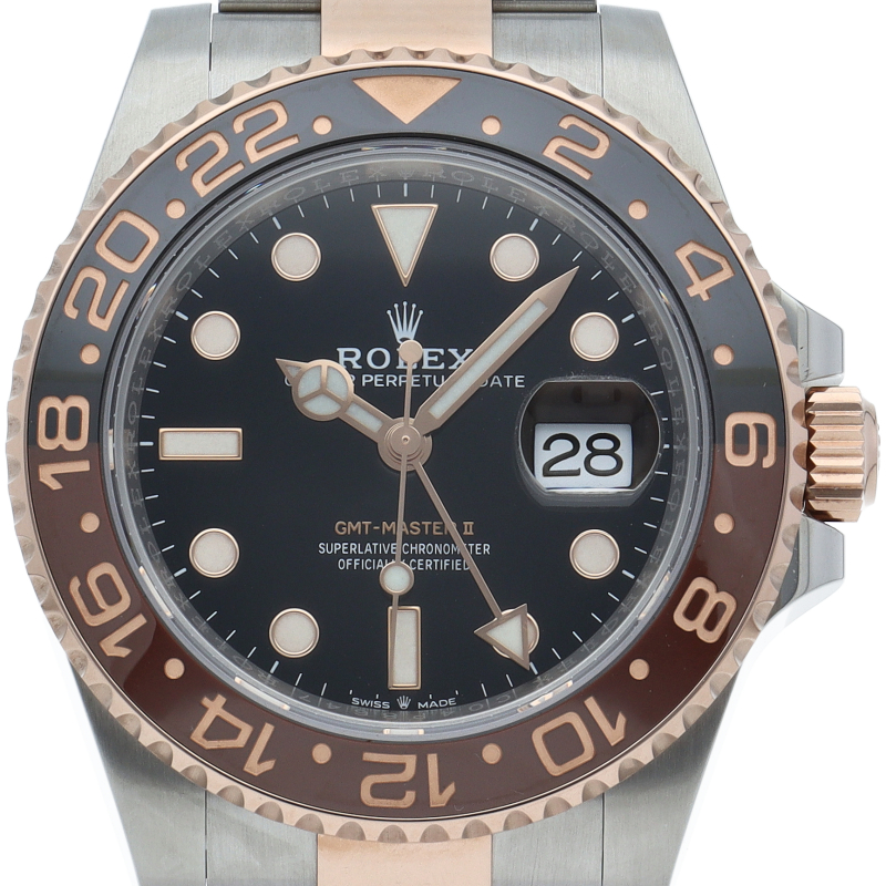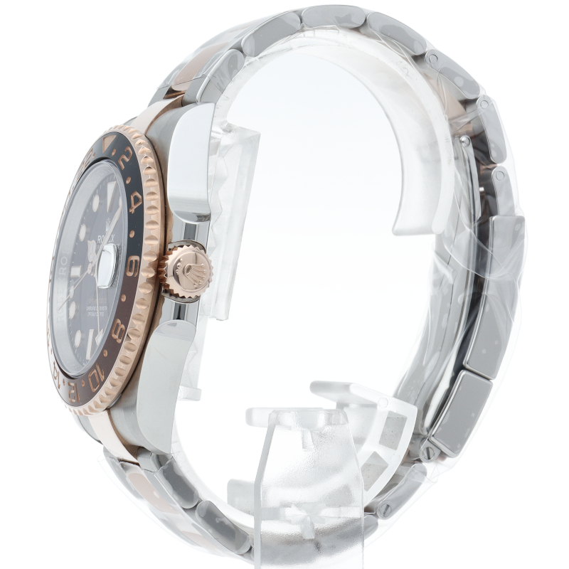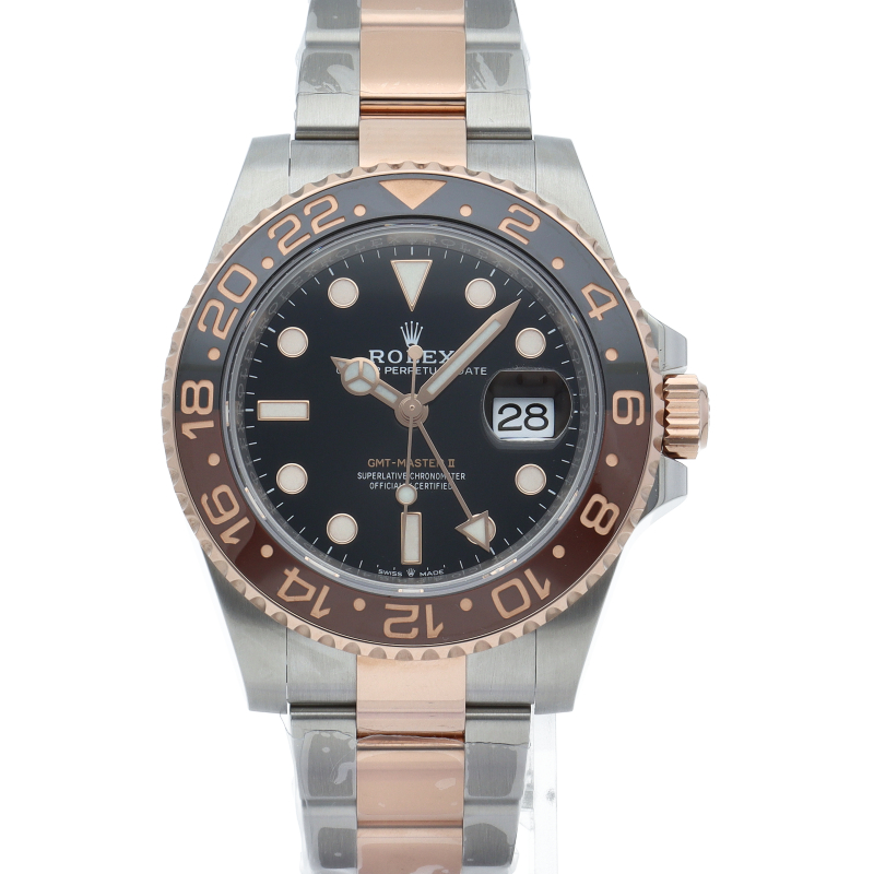 セラクロムベゼルでのGMTマスター2。ロレックスの最新ムーブメント「Cal.3285」を搭載しており、エネルギー効率が最適化されたクロナジー脱進機、テンプを衝撃から守る為の耐震装置パラフレックス ショック・アブソーバそして70時間ものロングパワーリザーブとロレックスの最新技術を駆使したムーブメントになっています。