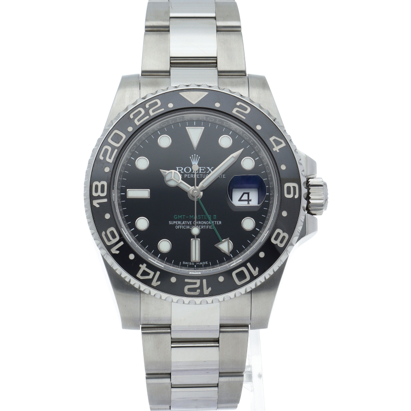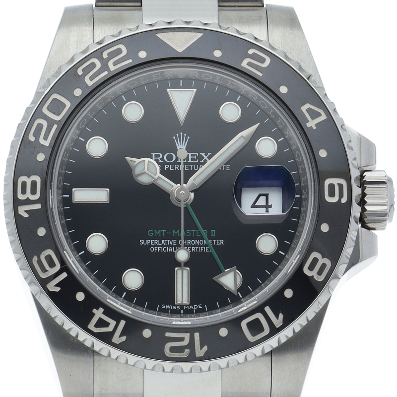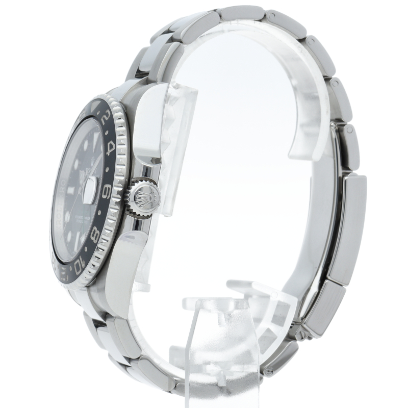 ロレックス人気モデル「GMTマスター2」。2019年に生産が終了となったセラミックの黒ベゼルは実用性はもちろん、これからの相場が楽しみな1本です。
