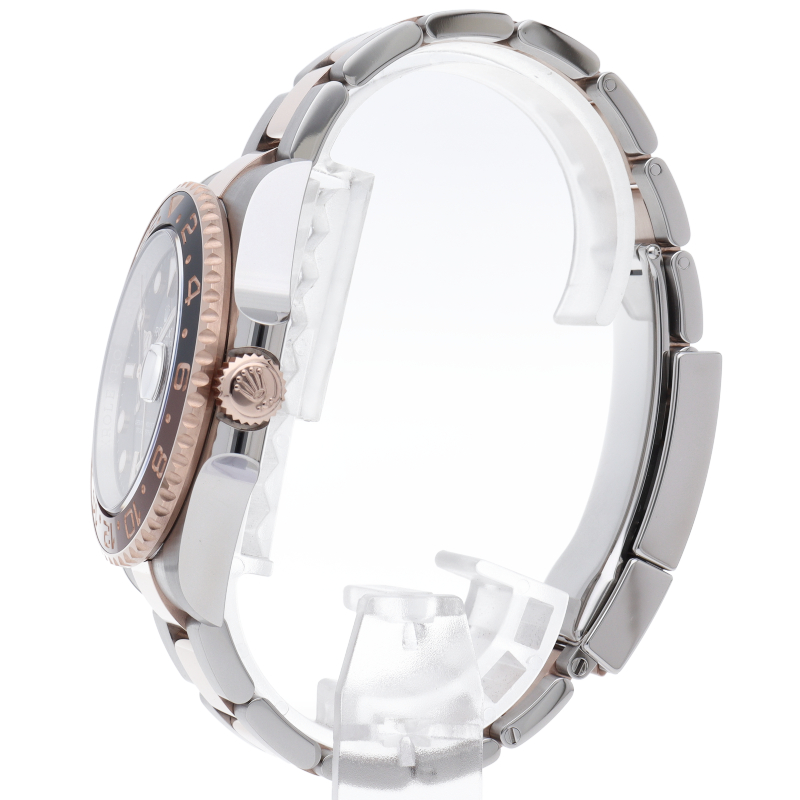 セラクロムベゼルでのGMTマスター2。ロレックスの最新ムーブメント「Cal.3285」を搭載しており、エネルギー効率が最適化されたクロナジー脱進機、テンプを衝撃から守る為の耐震装置パラフレックス ショック・アブソーバそして70時間ものロングパワーリザーブとロレックスの最新技術を駆使したムーブメントになっています。