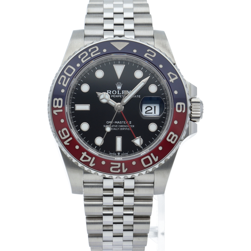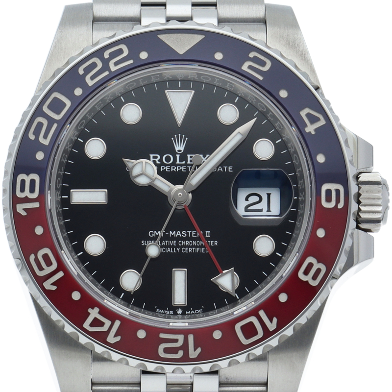 ロレックス人気モデル「GMTマスター2」のモデルチェンジした新型モデルです。セラミックベゼルにブレスやバックルも新しくなり高級感が更に増した1本です。2018年発売モデル。