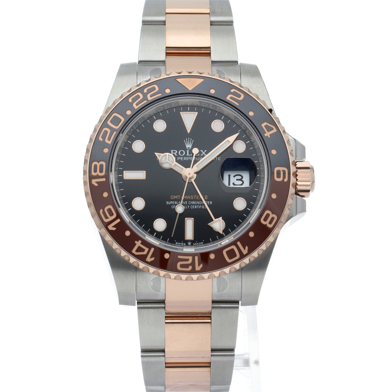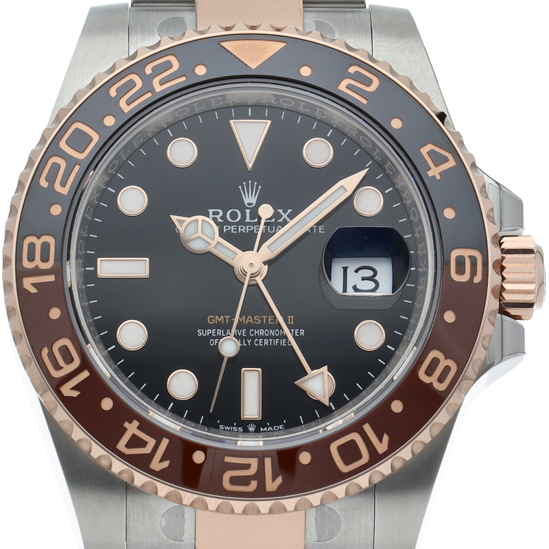 セラクロムベゼルでのGMTマスター2。ロレックスの最新ムーブメント「Cal.3285」を搭載しており、エネルギー効率が最適化されたクロナジー脱進機、テンプを衝撃から守る為の耐震装置パラフレックス ショック・アブソーバそして70時間ものロングパワーリザーブとロレックスの最新技術を駆使したムーブメントになっています。