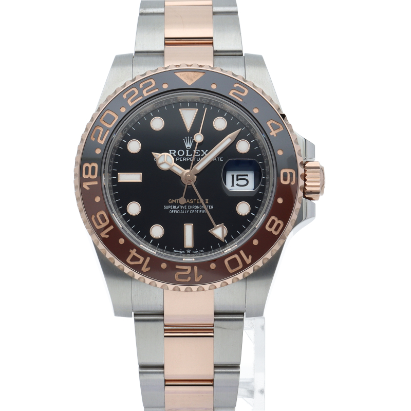 セラクロムベゼルでのGMTマスター2。ロレックスの最新ムーブメント「Cal.3285」を搭載しており、エネルギー効率が最適化されたクロナジー脱進機、テンプを衝撃から守る為の耐震装置パラフレックス ショック・アブソーバそして70時間ものロングパワーリザーブとロレックスの最新技術を駆使したムーブメントになっています。