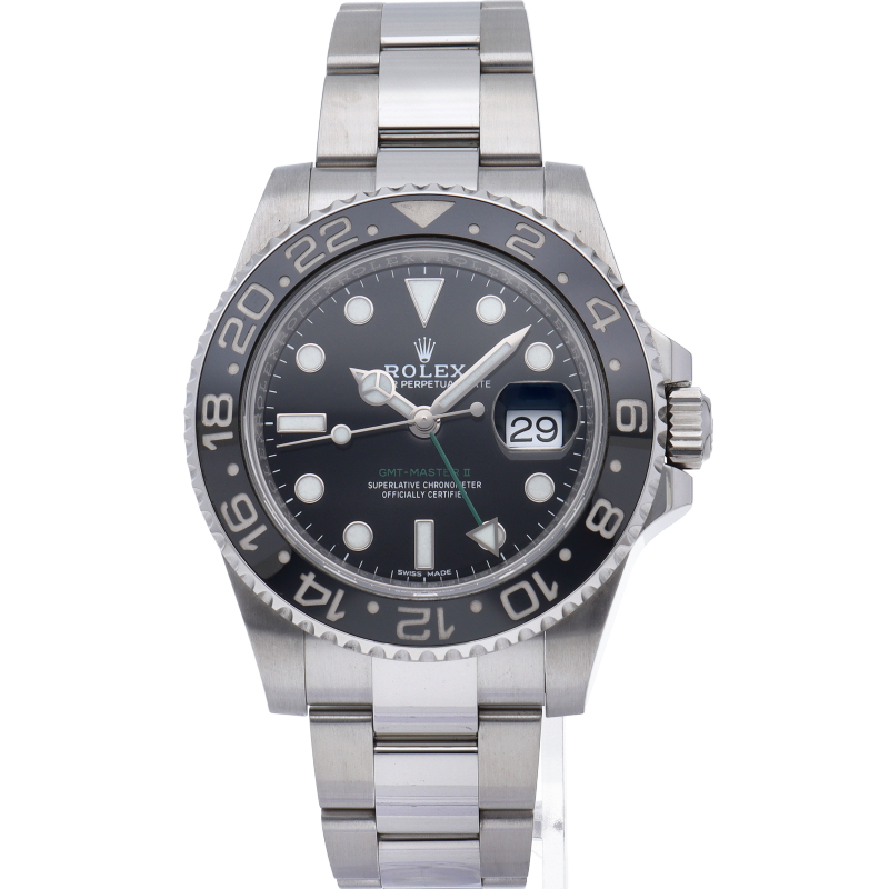 ロレックス人気モデル「GMTマスター2」。2019年に生産が終了となったセラミックの黒ベゼルは実用性はもちろん、これからの相場が楽しみな1本です。