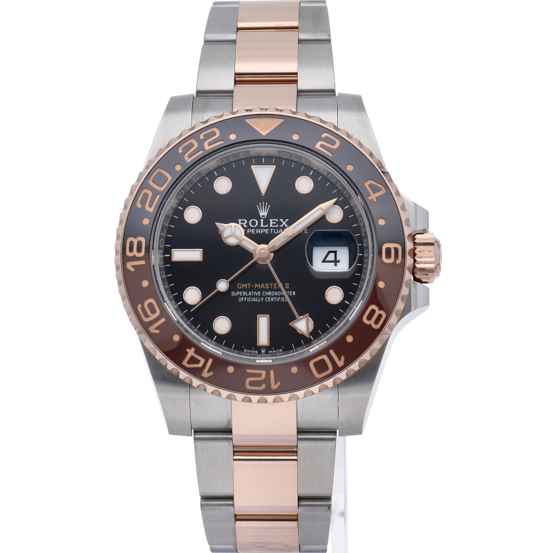 セラクロムベゼルでのGMTマスター2。ロレックスの最新ムーブメント「Cal.3285」を搭載しており、エネルギー効率が最適化されたクロナジー脱進機、テンプを衝撃から守る為の耐震装置パラフレックス ショック・アブソーバそして70時間ものロングパワーリザーブとロレックスの最新技術を駆使したムーブメントになっています。