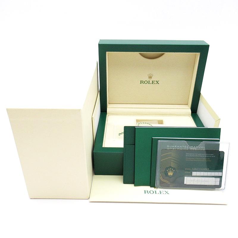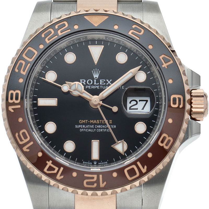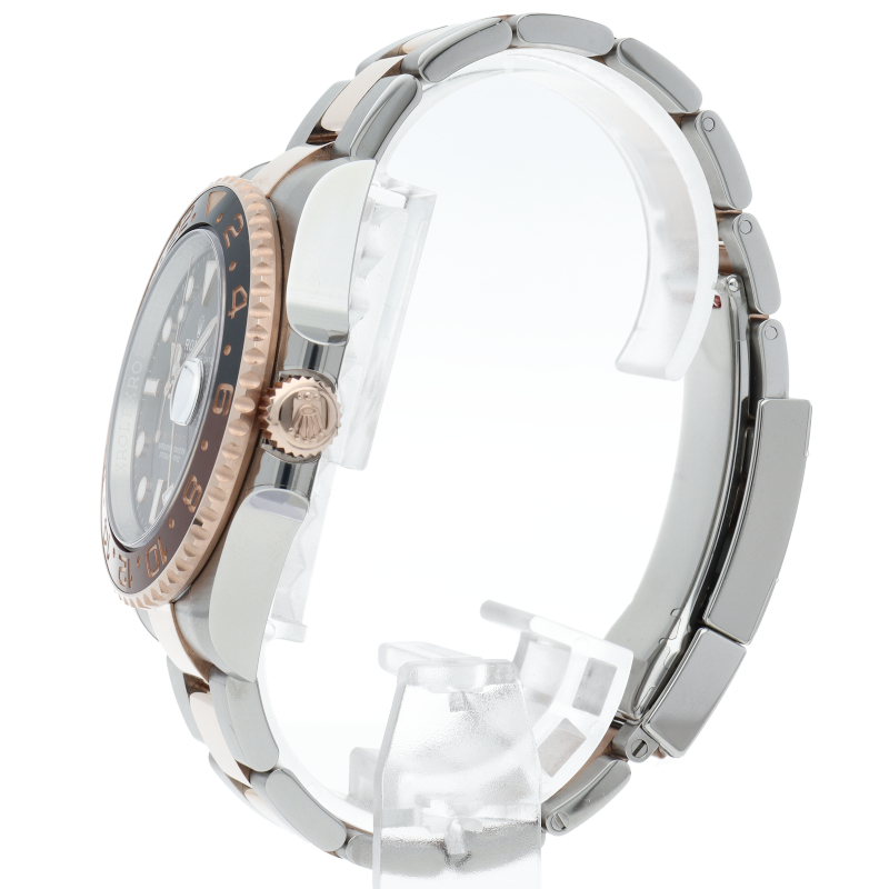セラクロムベゼルでのGMTマスター2。ロレックスの最新ムーブメント「Cal.3285」を搭載しており、エネルギー効率が最適化されたクロナジー脱進機、テンプを衝撃から守る為の耐震装置パラフレックス ショック・アブソーバそして70時間ものロングパワーリザーブとロレックスの最新技術を駆使したムーブメントになっています。