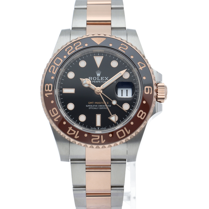 セラクロムベゼルでのGMTマスター2。ロレックスの最新ムーブメント「Cal.3285」を搭載しており、エネルギー効率が最適化されたクロナジー脱進機、テンプを衝撃から守る為の耐震装置パラフレックス ショック・アブソーバそして70時間ものロングパワーリザーブとロレックスの最新技術を駆使したムーブメントになっています。