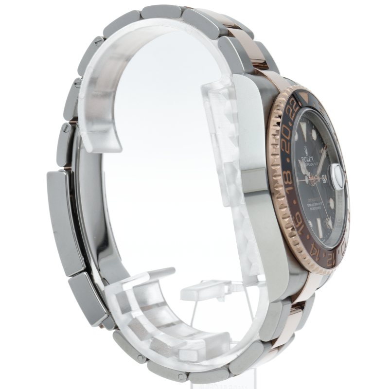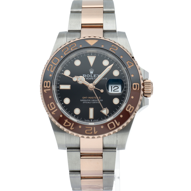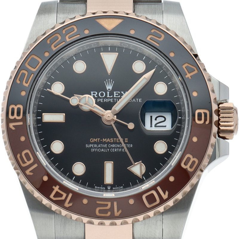 セラクロムベゼルでのGMTマスター2。ロレックスの最新ムーブメント「Cal.3285」を搭載しており、エネルギー効率が最適化されたクロナジー脱進機、テンプを衝撃から守る為の耐震装置パラフレックス ショック・アブソーバそして70時間ものロングパワーリザーブとロレックスの最新技術を駆使したムーブメントになっています。