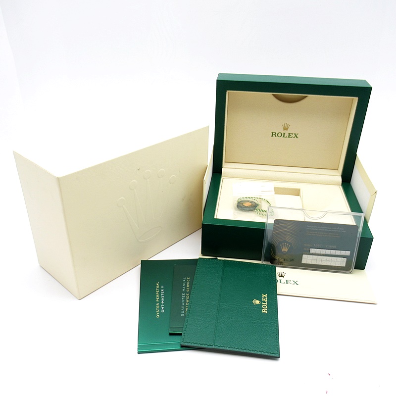 セラクロムベゼルでのGMTマスター2。ロレックスの最新ムーブメント「Cal.3285」を搭載しており、エネルギー効率が最適化されたクロナジー脱進機、テンプを衝撃から守る為の耐震装置パラフレックス ショック・アブソーバそして70時間ものロングパワーリザーブとロレックスの最新技術を駆使したムーブメントになっています。