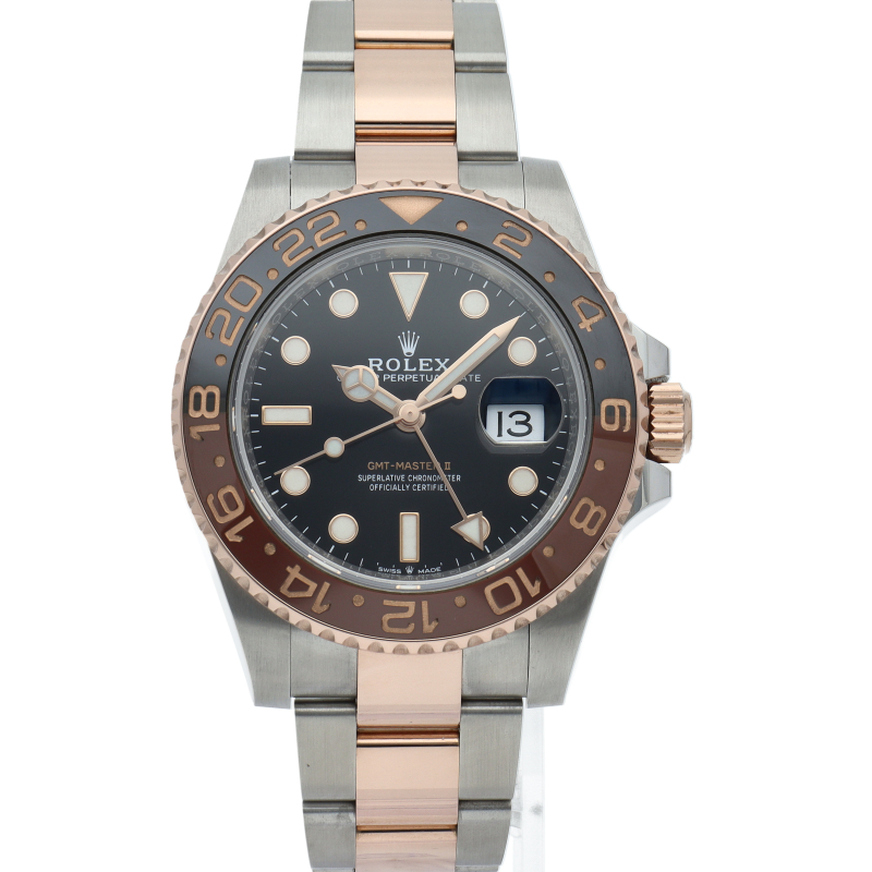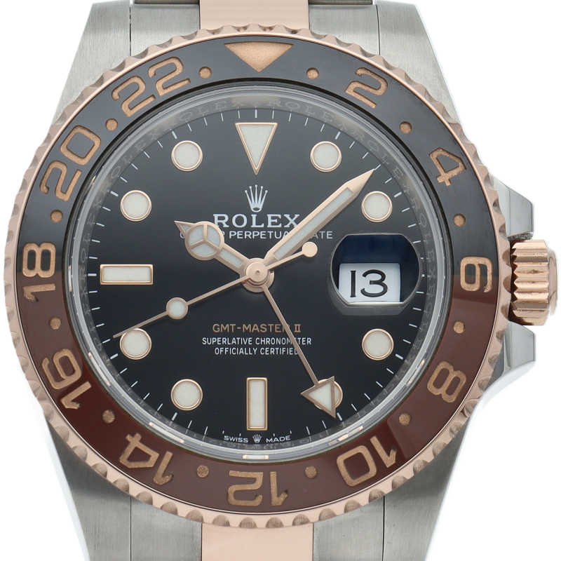 セラクロムベゼルでのGMTマスター2。ロレックスの最新ムーブメント「Cal.3285」を搭載しており、エネルギー効率が最適化されたクロナジー脱進機、テンプを衝撃から守る為の耐震装置パラフレックス ショック・アブソーバそして70時間ものロングパワーリザーブとロレックスの最新技術を駆使したムーブメントになっています。
