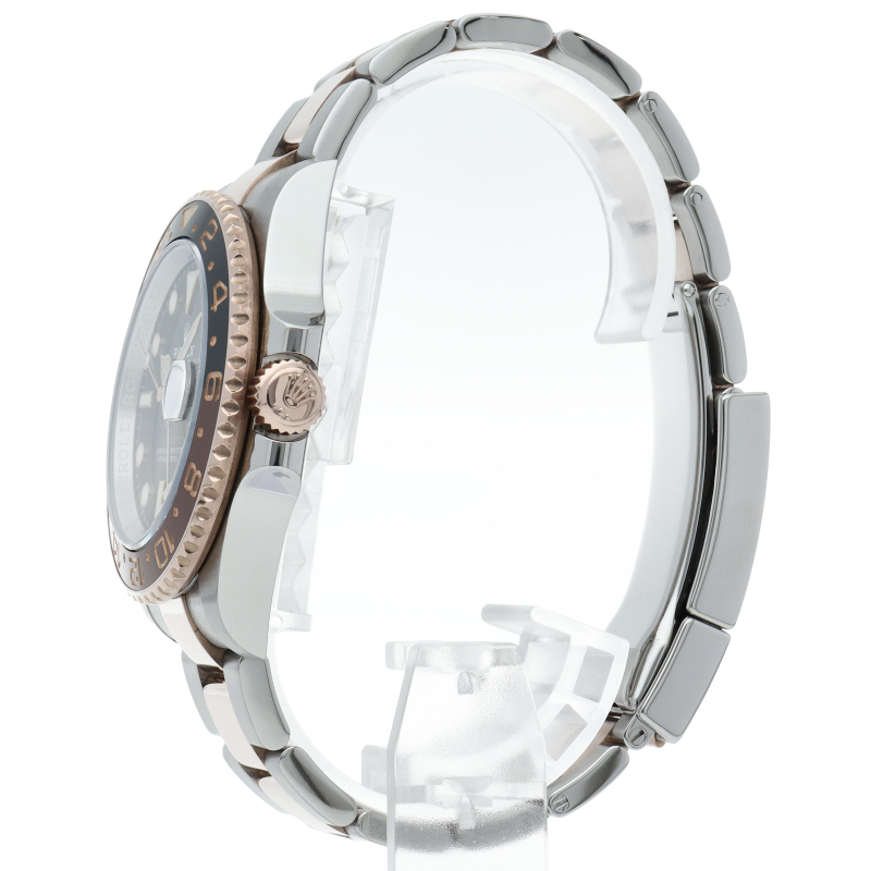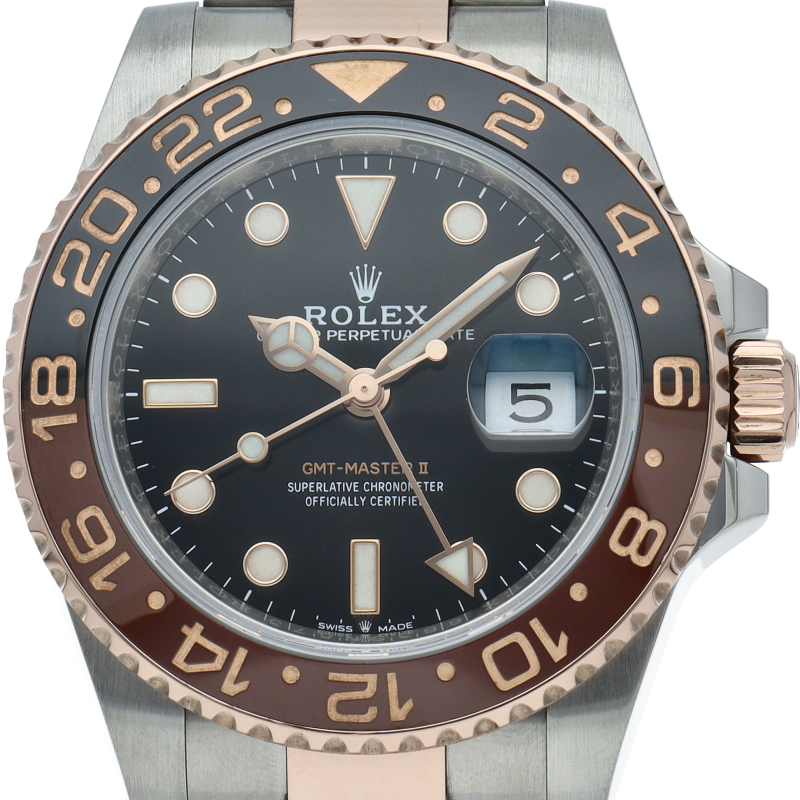 セラクロムベゼルでのGMTマスター2。ロレックスの最新ムーブメント「Cal.3285」を搭載しており、エネルギー効率が最適化されたクロナジー脱進機、テンプを衝撃から守る為の耐震装置パラフレックス ショック・アブソーバそして70時間ものロングパワーリザーブとロレックスの最新技術を駆使したムーブメントになっています。