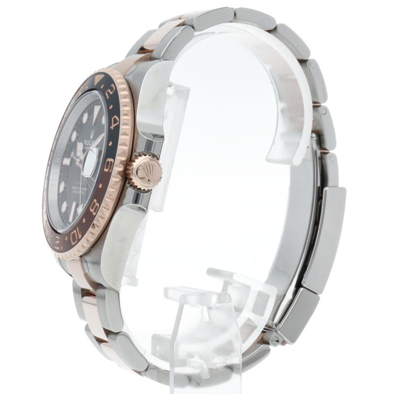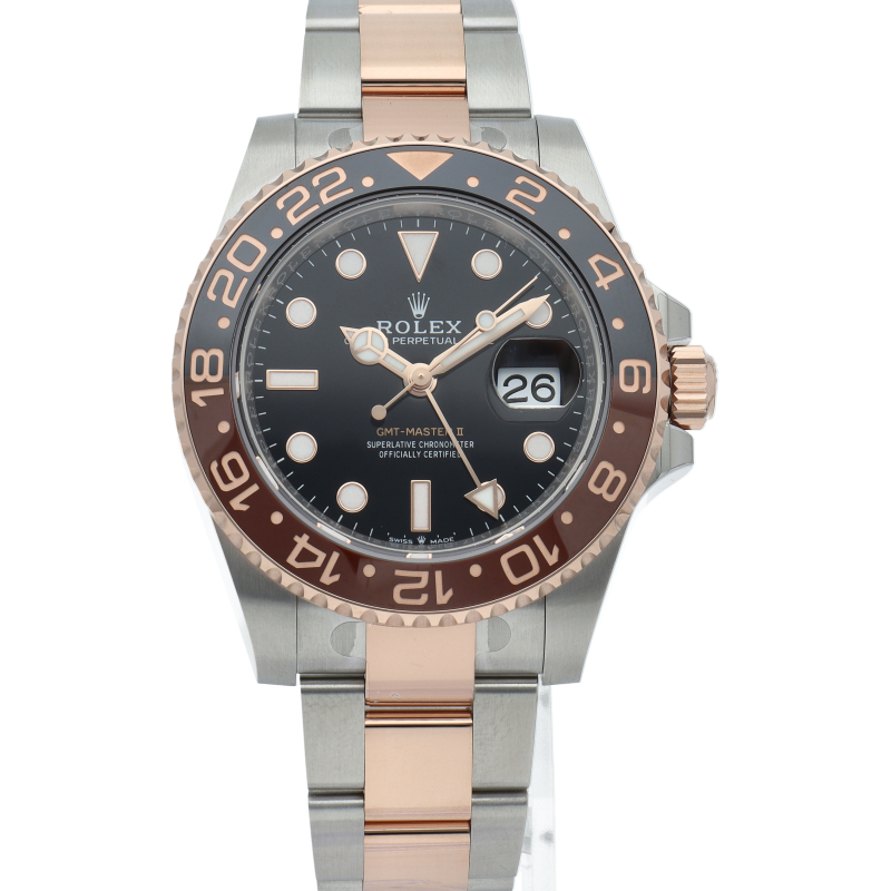 セラクロムベゼルでのGMTマスター2。ロレックスの最新ムーブメント「Cal.3285」を搭載しており、エネルギー効率が最適化されたクロナジー脱進機、テンプを衝撃から守る為の耐震装置パラフレックス ショック・アブソーバそして70時間ものロングパワーリザーブとロレックスの最新技術を駆使したムーブメントになっています。