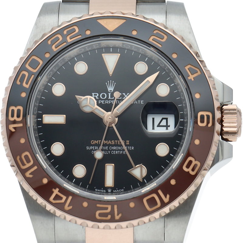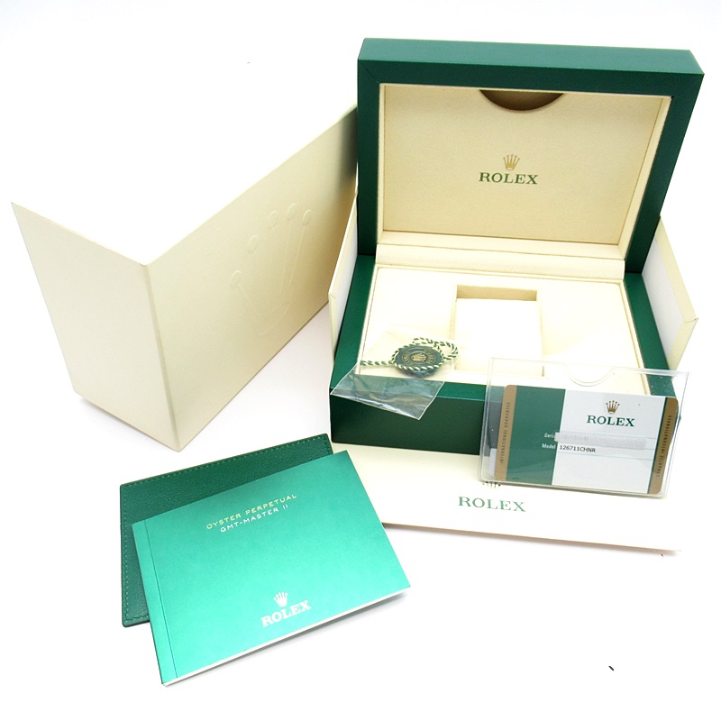 セラクロムベゼルでのGMTマスター2。ロレックスの最新ムーブメント「Cal.3285」を搭載しており、エネルギー効率が最適化されたクロナジー脱進機、テンプを衝撃から守る為の耐震装置パラフレックス ショック・アブソーバそして70時間ものロングパワーリザーブとロレックスの最新技術を駆使したムーブメントになっています。