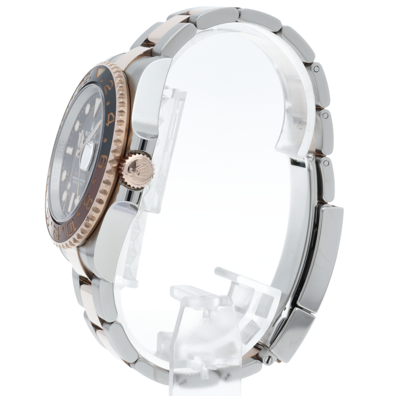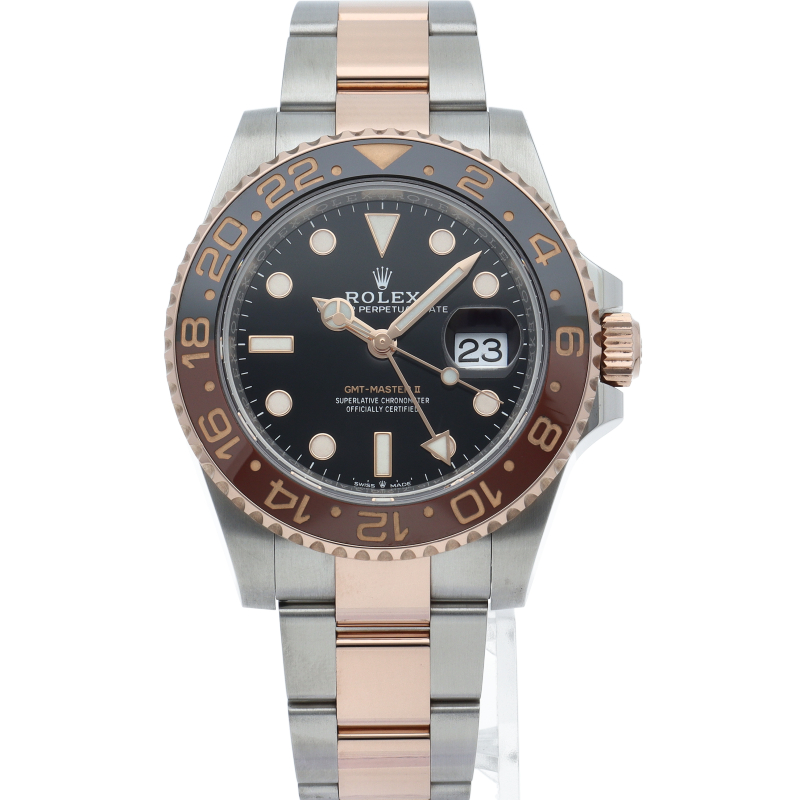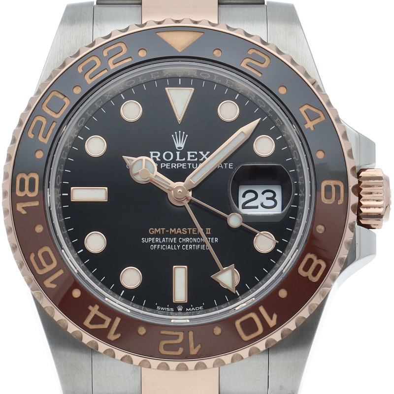 セラクロムベゼルでのGMTマスター2。ロレックスの最新ムーブメント「Cal.3285」を搭載しており、エネルギー効率が最適化されたクロナジー脱進機、テンプを衝撃から守る為の耐震装置パラフレックス ショック・アブソーバそして70時間ものロングパワーリザーブとロレックスの最新技術を駆使したムーブメントになっています。