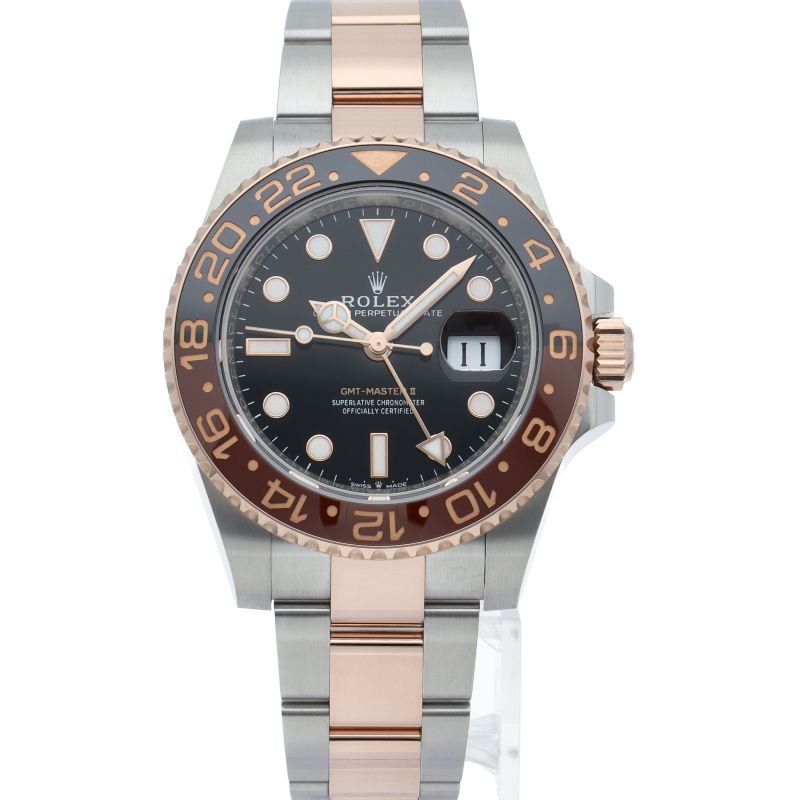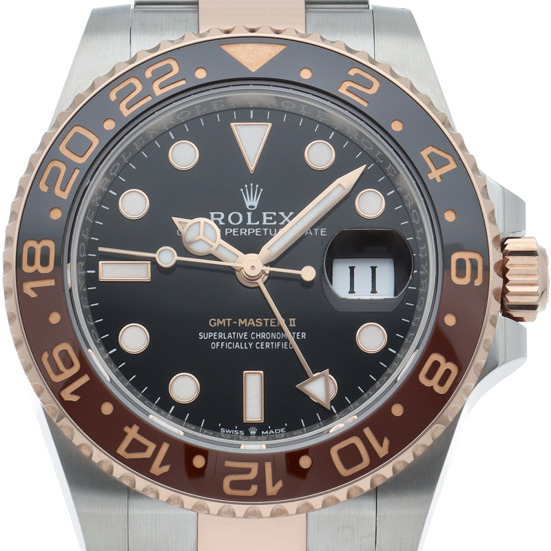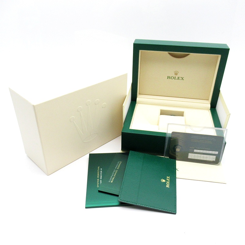 セラクロムベゼルでのGMTマスター2。ロレックスの最新ムーブメント「Cal.3285」を搭載しており、エネルギー効率が最適化されたクロナジー脱進機、テンプを衝撃から守る為の耐震装置パラフレックス ショック・アブソーバそして70時間ものロングパワーリザーブとロレックスの最新技術を駆使したムーブメントになっています。