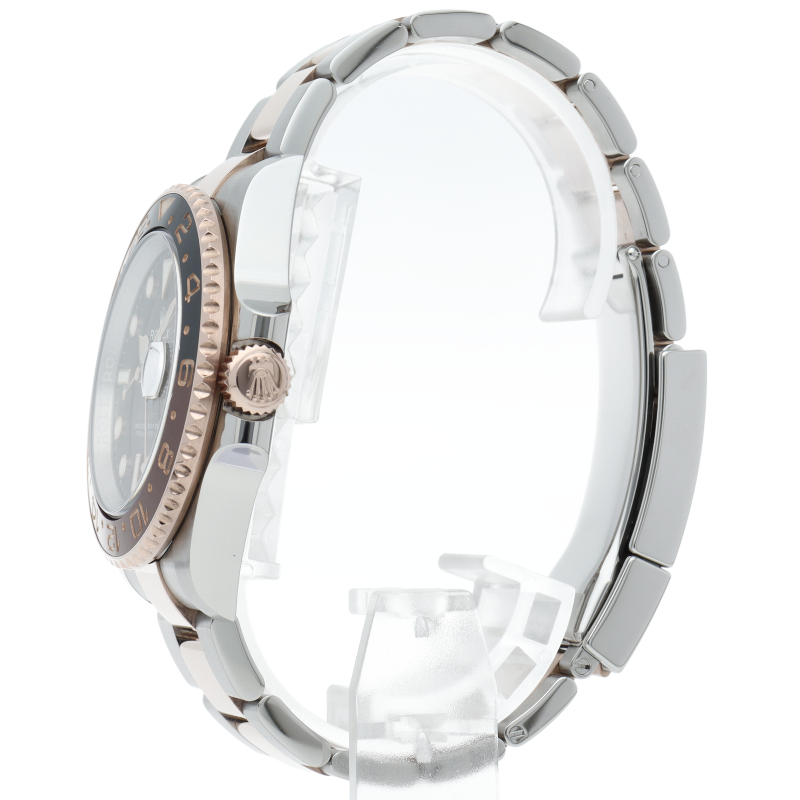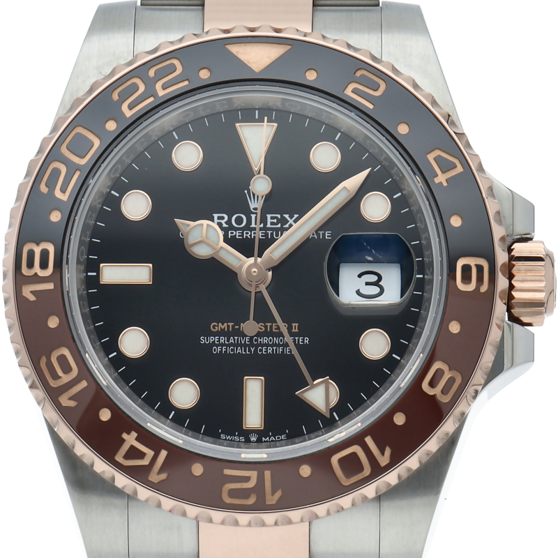 セラクロムベゼルでのGMTマスター2。ロレックスの最新ムーブメント「Cal.3285」を搭載しており、エネルギー効率が最適化されたクロナジー脱進機、テンプを衝撃から守る為の耐震装置パラフレックス ショック・アブソーバそして70時間ものロングパワーリザーブとロレックスの最新技術を駆使したムーブメントになっています。