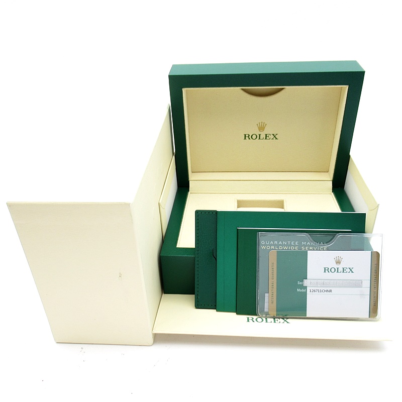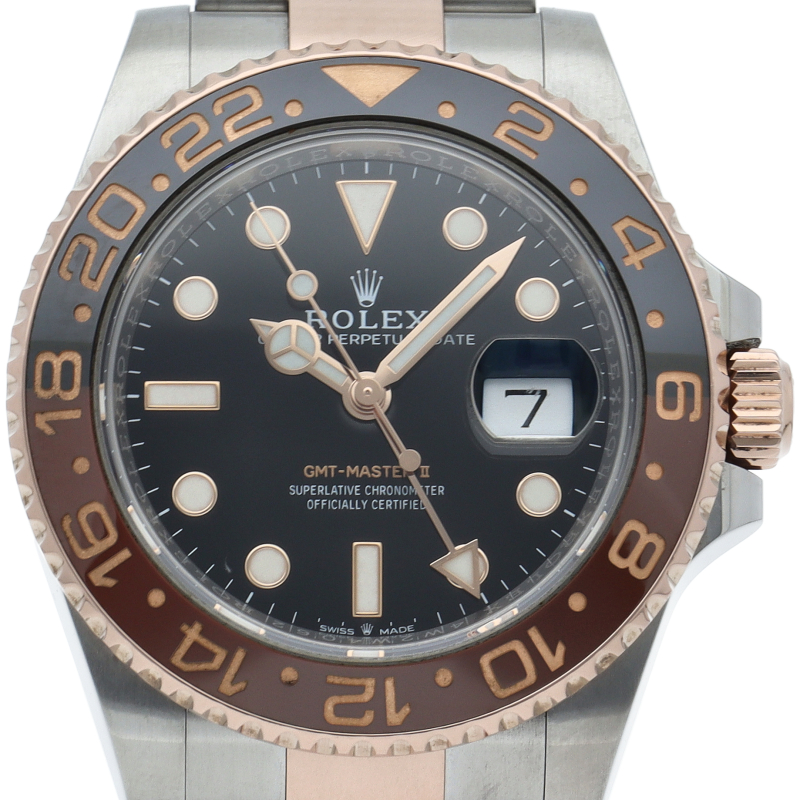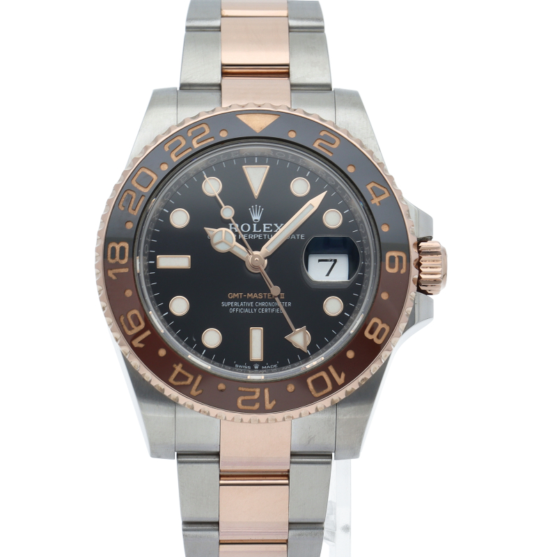 セラクロムベゼルでのGMTマスター2。ロレックスの最新ムーブメント「Cal.3285」を搭載しており、エネルギー効率が最適化されたクロナジー脱進機、テンプを衝撃から守る為の耐震装置パラフレックス ショック・アブソーバそして70時間ものロングパワーリザーブとロレックスの最新技術を駆使したムーブメントになっています。