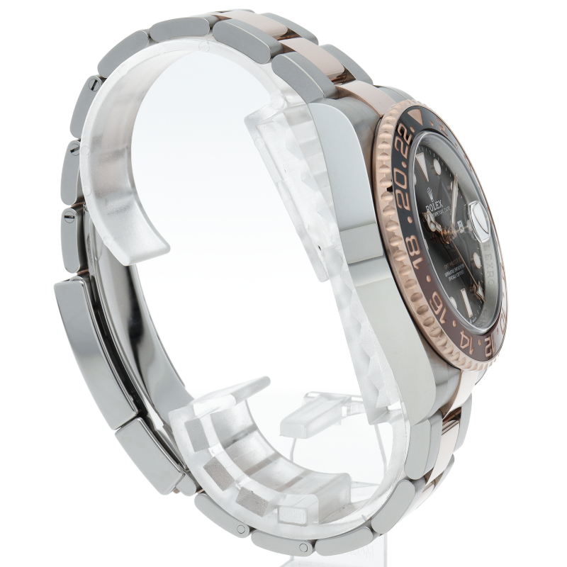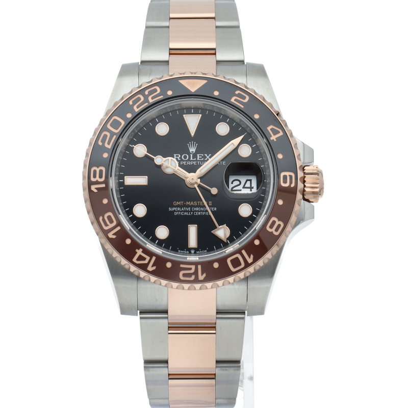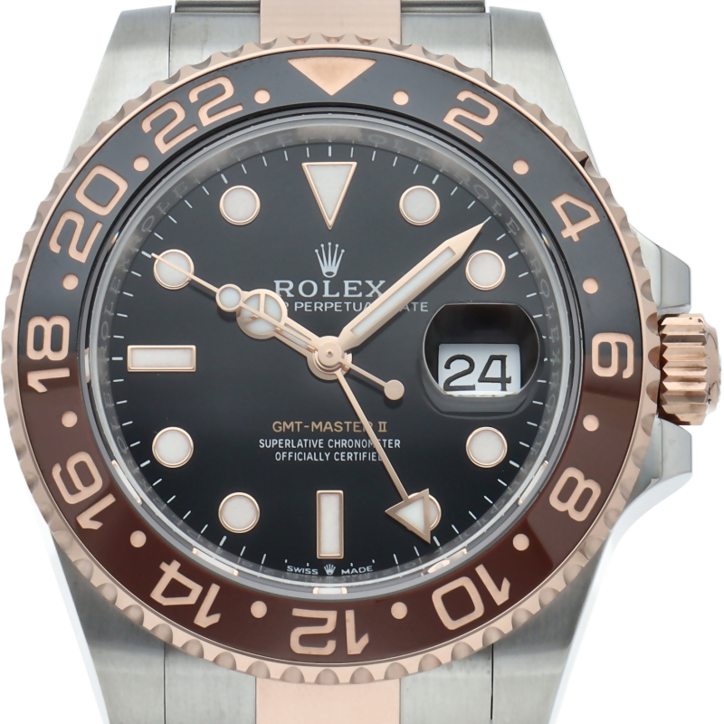 セラクロムベゼルでのGMTマスター2。ロレックスの最新ムーブメント「Cal.3285」を搭載しており、エネルギー効率が最適化されたクロナジー脱進機、テンプを衝撃から守る為の耐震装置パラフレックス ショック・アブソーバそして70時間ものロングパワーリザーブとロレックスの最新技術を駆使したムーブメントになっています。